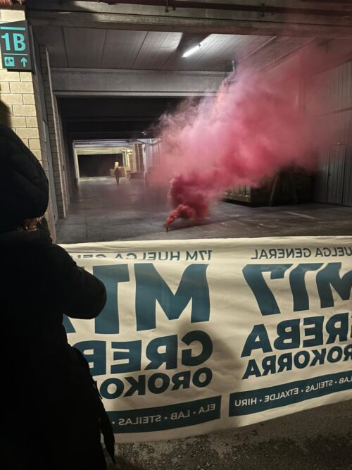 Goizak aurrera egin ahala, mobilizazioek indarra hartu dute. Markina-Xemeinen, eskualdeko dozenaka lagun elkartu dira berriro eta herriko biribilgunea hartu dute, errepidea moztuz. Ekintza horrek trafikoan eragina izan du eta une batez zirkulazioa etenda egon da. Hala ere, segituan bertaratu da Ertzaintza eta bi grebalari identifikatu dituzte.