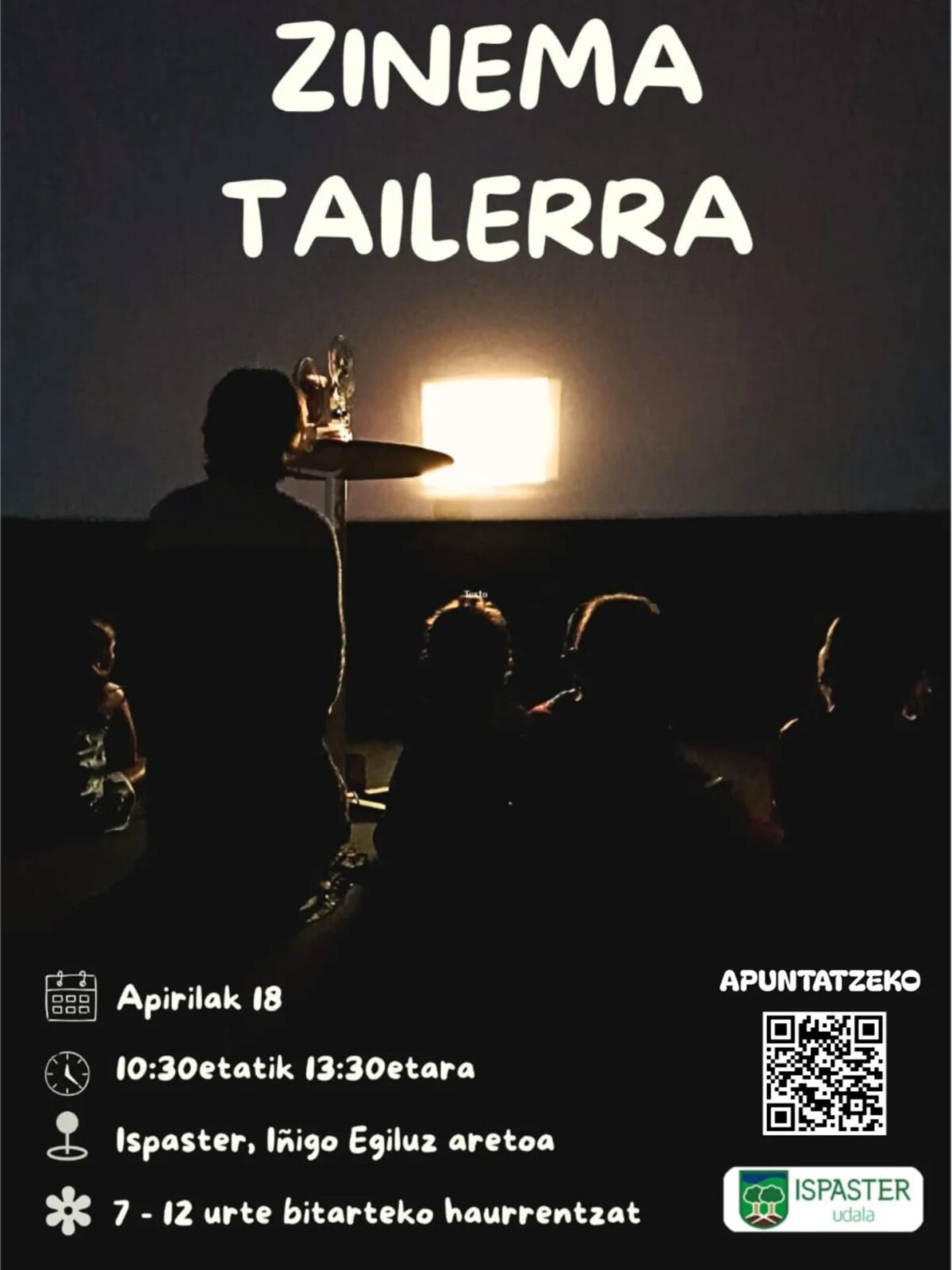 Ispasterren “Zinema Tailerra” izeneko jarduera berezia antolatu da datorren zapatuan [apirilak 18], haurrek sormen artistikoa garatzeko helburuarekin. Tailerra Iñigo Egiluz aretoan izango da, 10:30etik 13:30era bitartean.