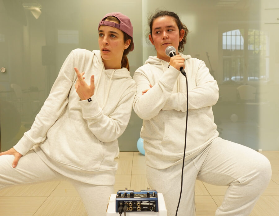 Maren Basterretxeak eta Uxue Alkortak 'Txapeldunak' umeentzako bertso antzerkia eskainiko dute bihar [apirilak 24] Aulestiko Udal Areto Nagusian.