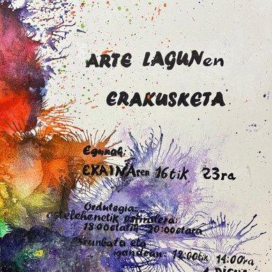 Arte lagunen erakusketa egongo da Mutrikun ekainaren 16tik [astelehena] ekainare 23ra [astelehena] bitartean, Zabiel Kultur etxeko lehenengo solairuan. Astelehenetik ostiralera 18:00etatik 20:00etara, eta zapatu eta domekan 12:00etatik 14:00etara.