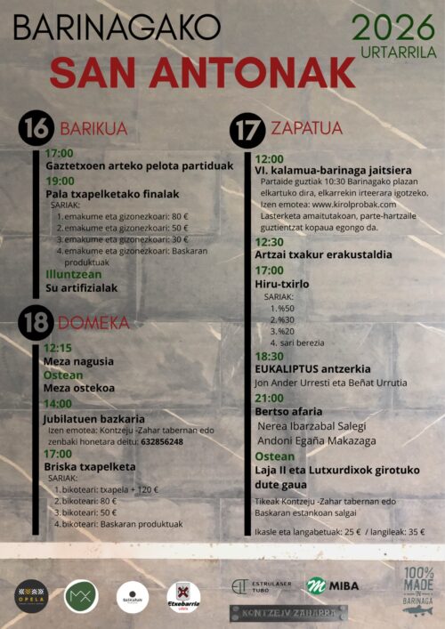 San Anton jaiak ospatuko dituzte Markina-Xemeingo Barinaga auzoan urtarrilaren 16tik 18ra.