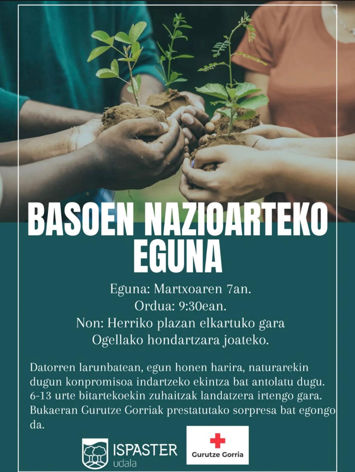 Ispaster. Igandean, Basoen Nazioarteko eguna ospatuko da Ispasterren. Udalak naturarekin duen konpromisoa indartzeko 6-13 urte bitarteko zuhaitzak landatuko ditu. 9:30ean Herriko Plazan elkartuko dira eta Ogellara hondartzara joango dira. Bukaeran, Gurutze Gorriak prestatutako sopresa bat egongo da.