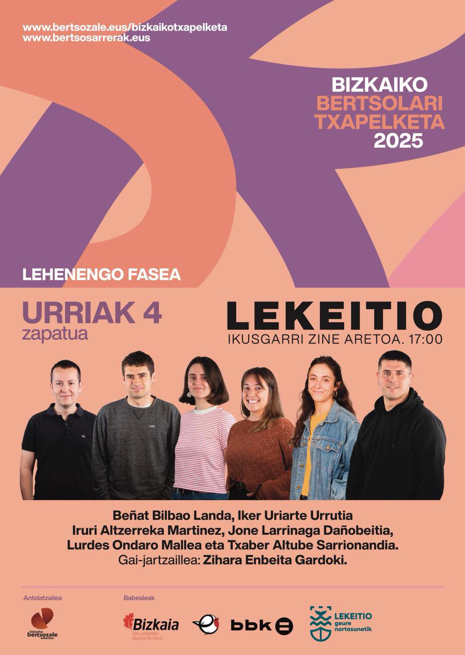Bizkaiko Bertsolari Txapelketako saioa, urriaren 4an [zapatua], 17:00etan, Ikusgarri zinema aretoan.