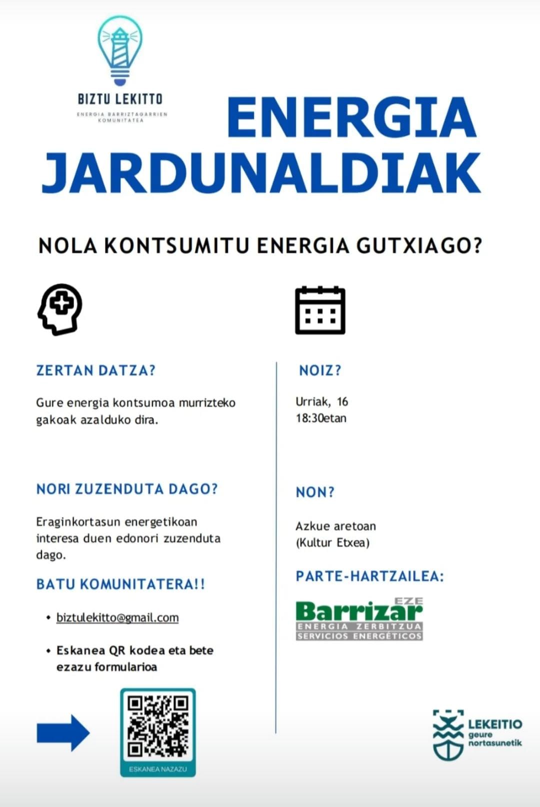 Biztu Lekittoren Energia Jardunaldietan, Nola kontsumitu energia gutxiago? hitzaldia, urriaren 16an [eguena], 18:30ean, Azkue aretoan.