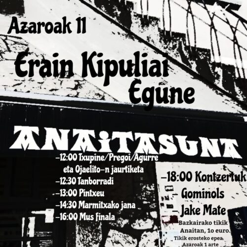 Erain Kipuliai Eguna ospatuko dute azaroaren 11n, 12:00etan hasita, Ondarroan.