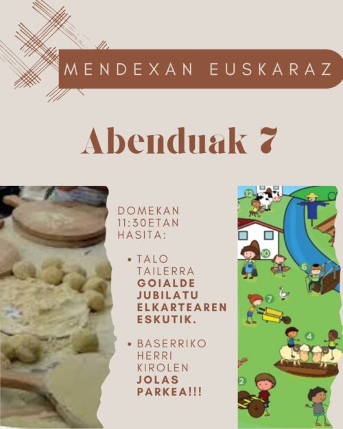 Euskararen Egunaren harira, abenduaren 7an, 11:30etik aurrera, Goialde Jubilatu Elkartearen eskutik talo tailerra egongo da, eta umeentzako baserriko herri kirolen jolas parkea.