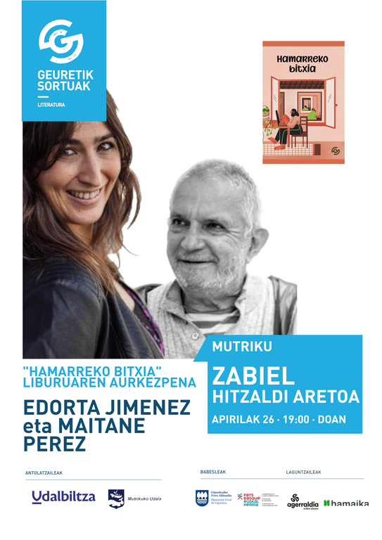 Edorta Jimenez eta Maitane Perezek Geuretik Sortuak ekimenaren baitan sortutako ‘Hamarreko bitxia’ bilduma aurkeztuko dute apirilaren 26an, 19:00etan, Zabielen. Bildumak hamar ipuin ditu, hamar idazlek idatzitakoak, horietako bi egongo dira aurkezpena egiten.