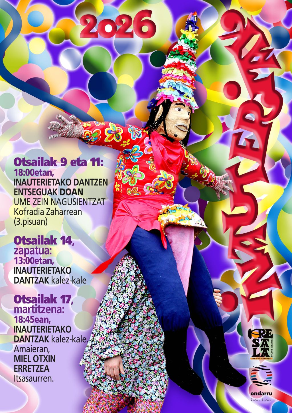 Kresala Kultur Elkartearen eskutik, inauterietako dantzak egongo dira kalez-kale Ondarroan otsailaren 17an [martitzena], 18:45ean hasita. Amaieran, Miel Otxin erreko dute Itsasaurren.