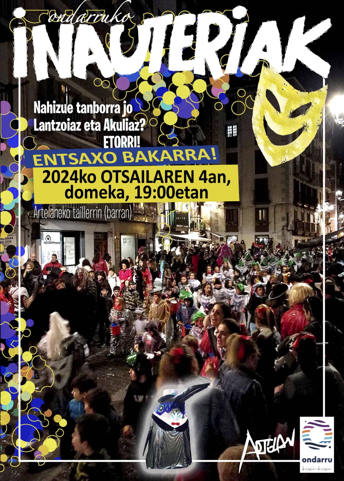 Inauterietako danborradan parte hartu nahi dutenentzako entsegu eguna otsailaren 4an, 19:00etan, Artelaneko tailerrean.
