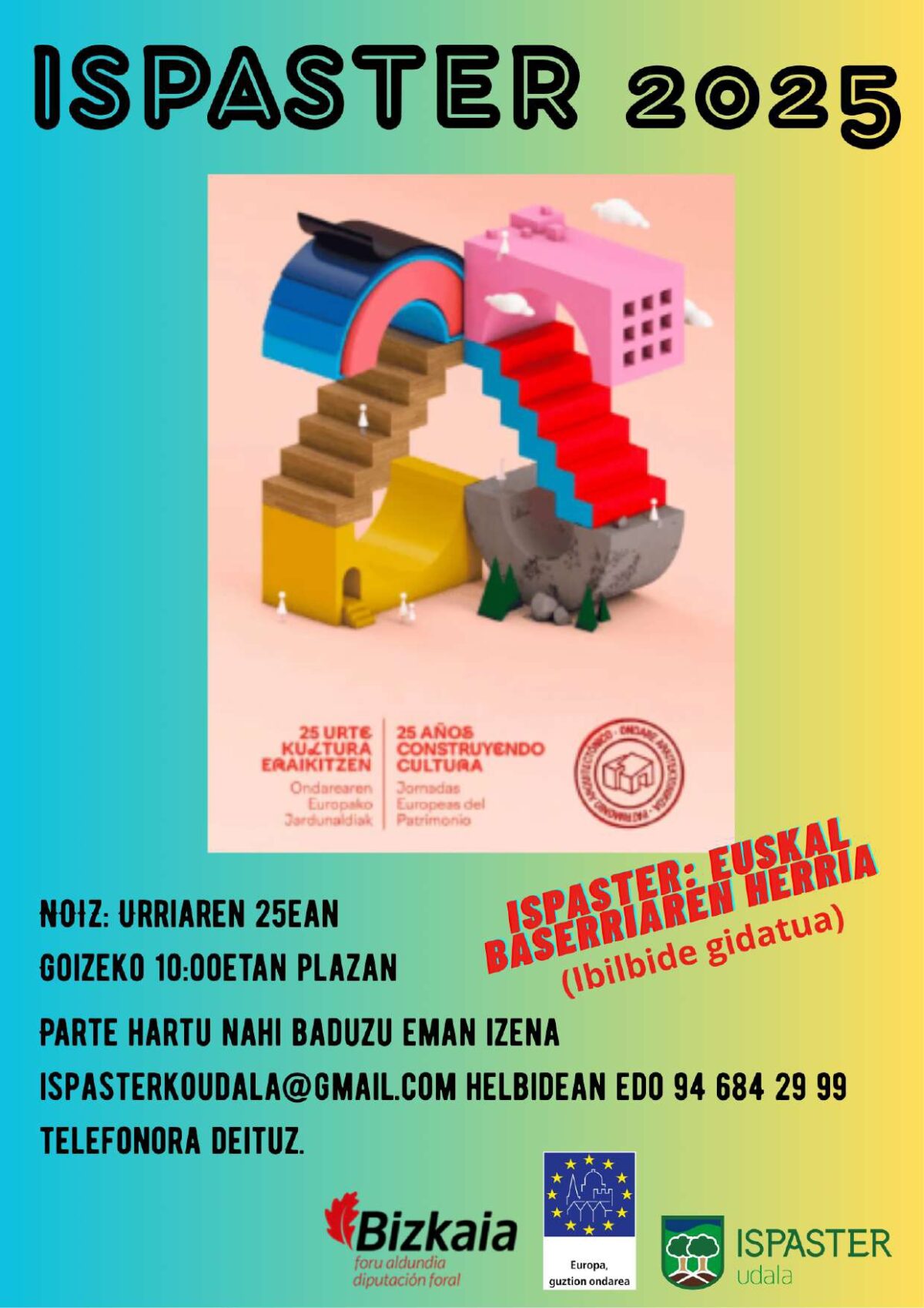 ‘Ispaster: Euskal baserriaren herria’ bisita gidatua, urriaren 25ean [zapatua], 10:00etan, plazan.