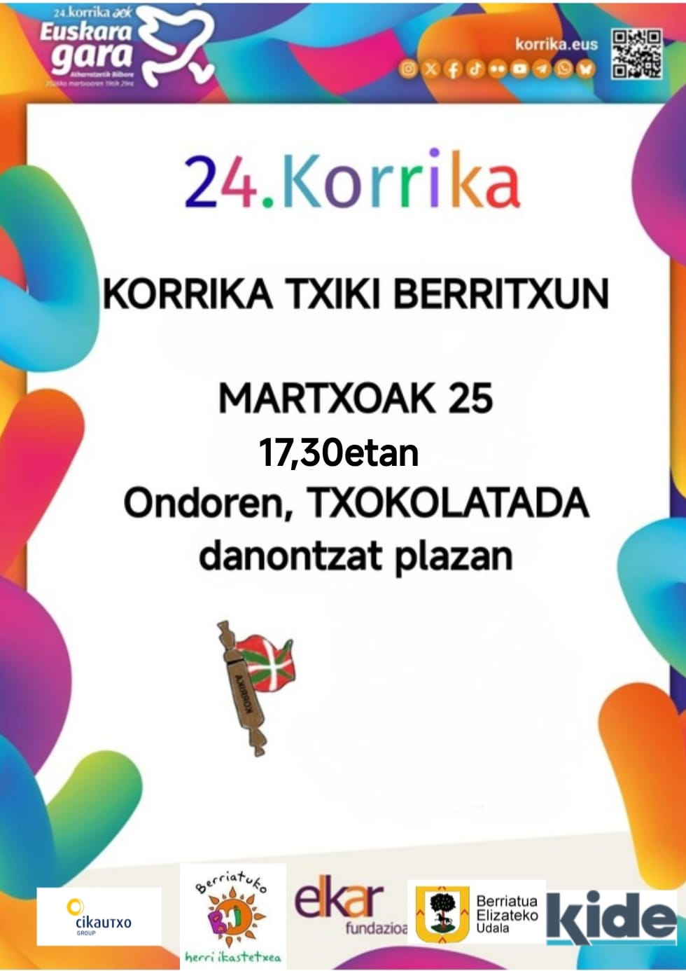Berriatua. Korrika Txikia eta Korrika, martxoaren 25ean (eguaztena).