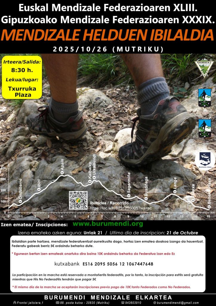 Burumendi Mendizale Elkarteak mendizale helduen ibilaldia antolatu du domekarako [urriak 26]. 8:30ean aterako dira Txurruka plazatik.