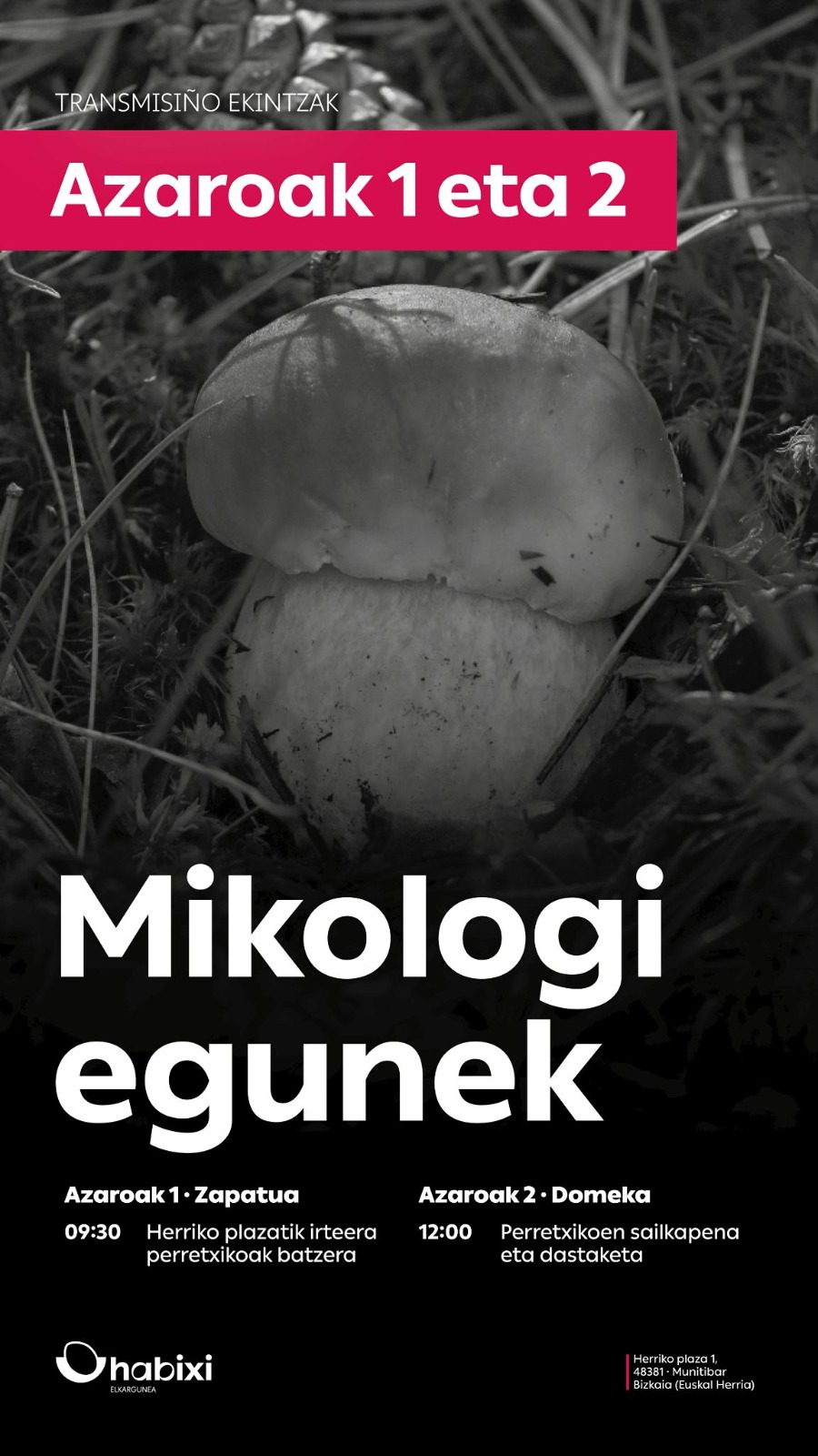 Habixi Elkarguneak antolatuta, Mikologi Egunek, herriko plazatik irteera perretxikoak batzera, azaroaren 1ean [zapatua], 09:30ean.