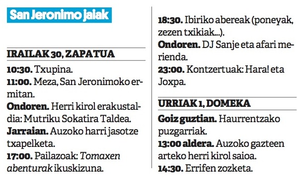 San Jeronimo jaiak ospatuko dituzte irailaren 30ean eta urriaren 1ean Mutrikuko Mijoa auzoan. IKUS EGITARAUA