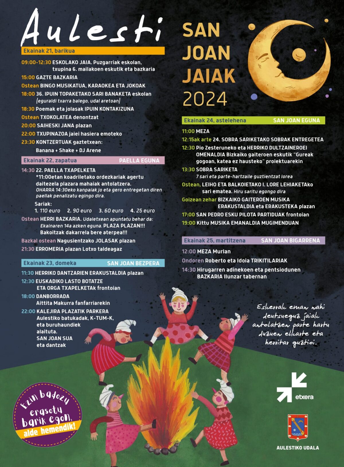 San Joan jaiak ospatuko ditu Aulestik, ekainaren 21etik ekainaren 25era, bost eguneko egitarau oparoarekin.