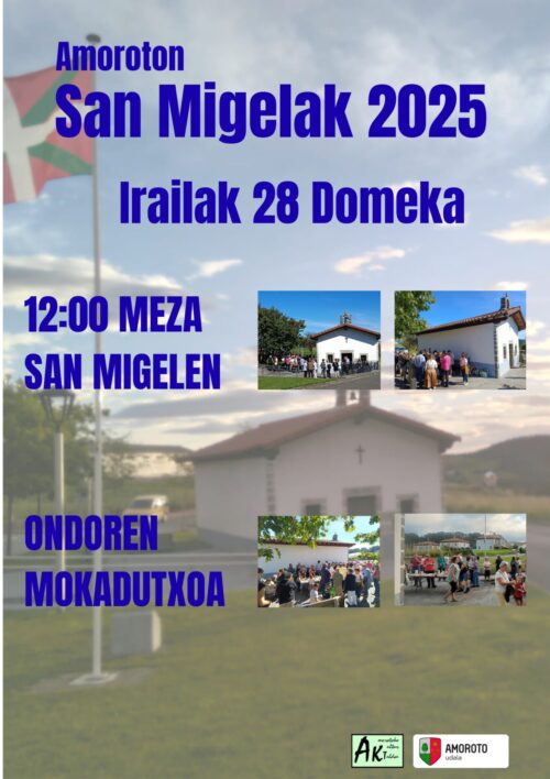 San Migel eguna ospatuko dute Amoroton irailaren 28an. 11:00etan meza egongo da San Migelen eta ostean, mokadutxoa.