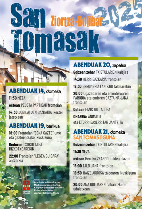 San Tomas jaiak ospatuko dituzte Ziortza-Bolibarren, abenduaren 14, 19, 20 eta 21ean.