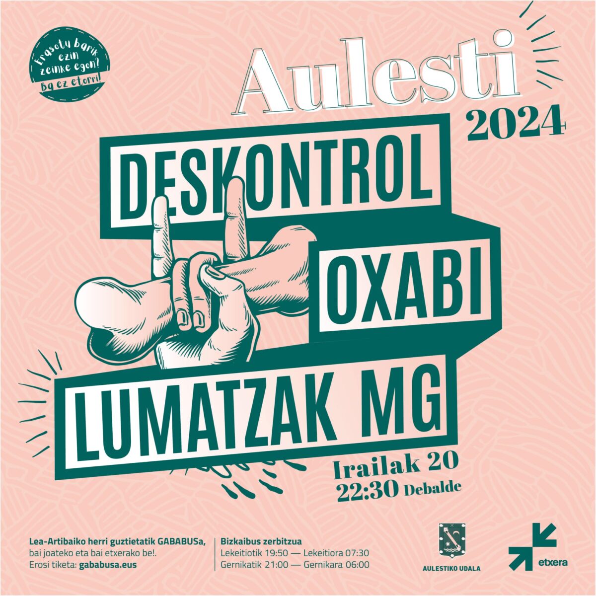 Aulestiko Santa Eufemi jaietan kontzertuak egongo dira doan: Deskontrol, Oxabi eta Lumatzak MJ. 22:30ean hasiko dira.