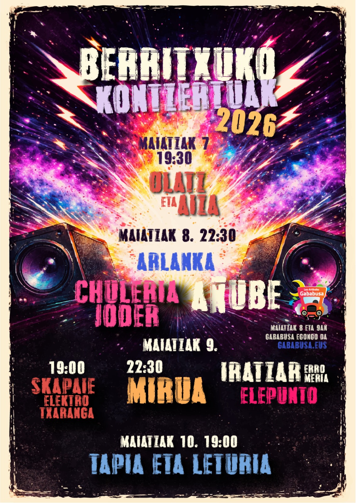 Berriatua.Skapaie elektro txaranga eta Mirua kontzertua egongo dira barikuan [maiatzak 9] 19:00tan Berriatuan.