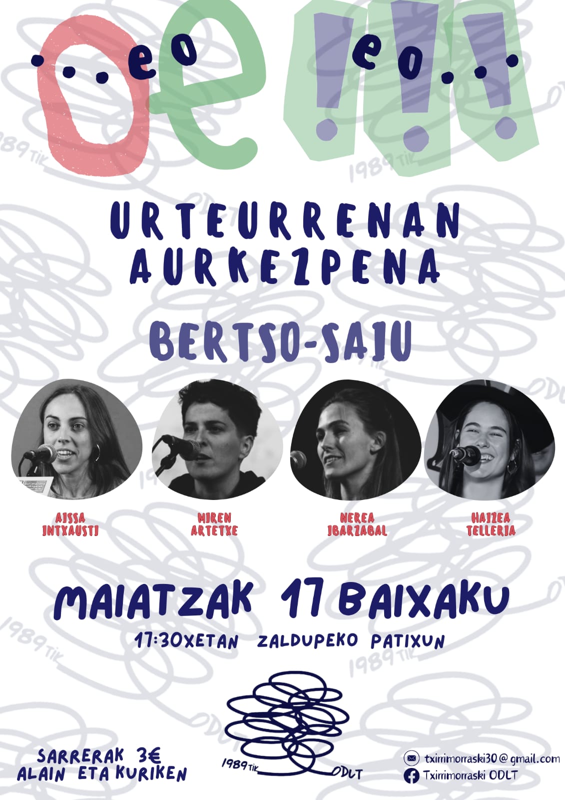 Txirrimorraski ODLTren 35. urteurrenaren egitarauaren baitan urteurren eguneko egitarauaren aurkezpena eta bertso saioa, maiatzaren 17an, 17:30etan, zaldupeko patioan.