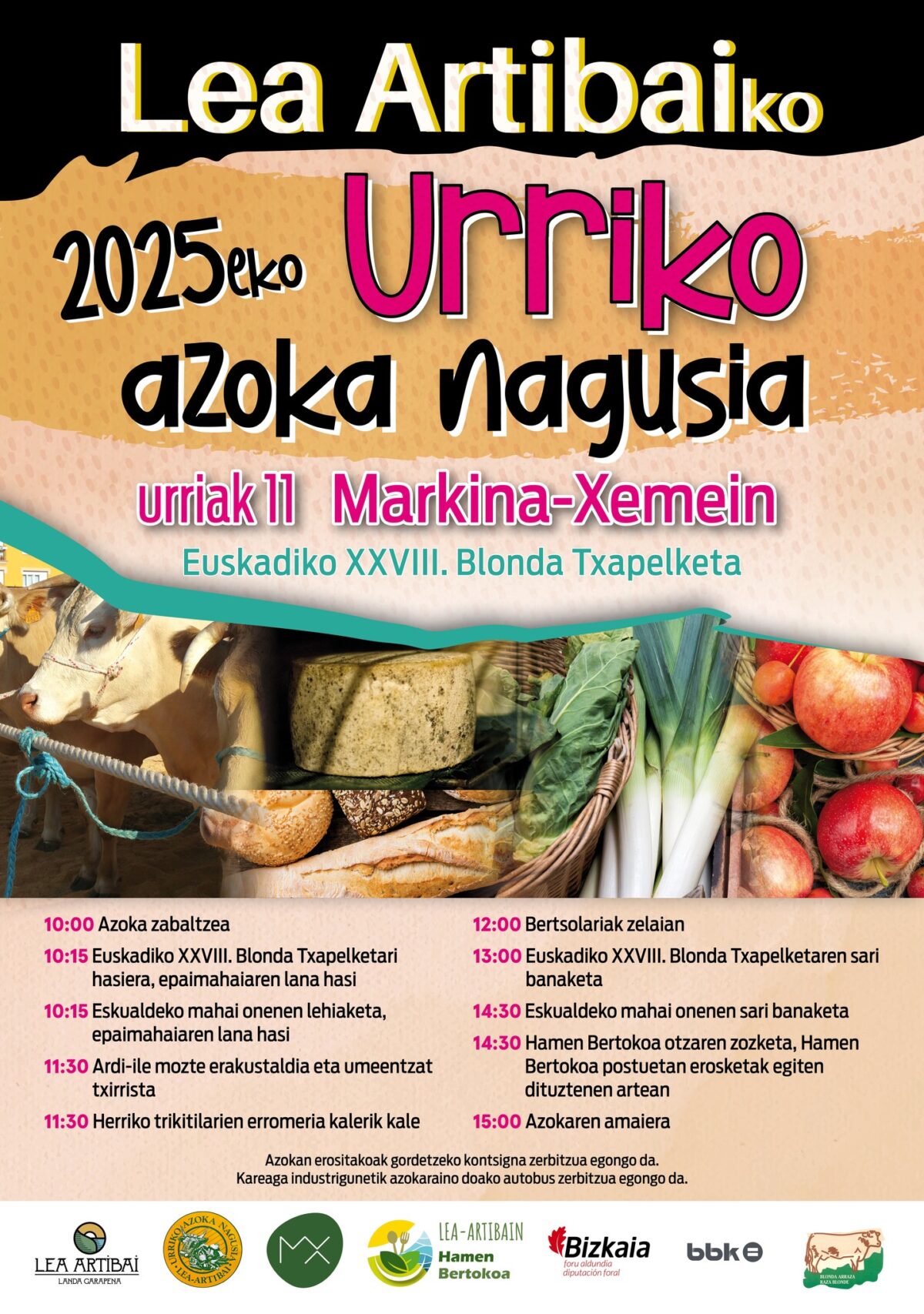 Lea-Artibaiko Urriko Azoka Nagusia, urriaren 11n [zapatua], 10:00etatik 14:30era, Zelai inguruan.